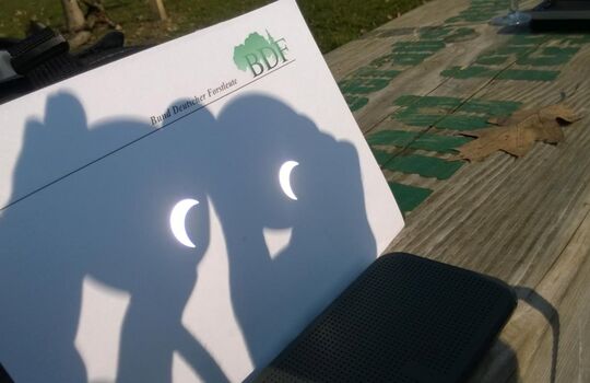 wir möchten Sie mit ein paar Schnappschüssen der heutigen partiellen Sonnenfinsternis erfreuen (entstanden in der Pause unserer Landesvorstandssitzung am Walderlebniszentrum Soonwald in Neupfalz).