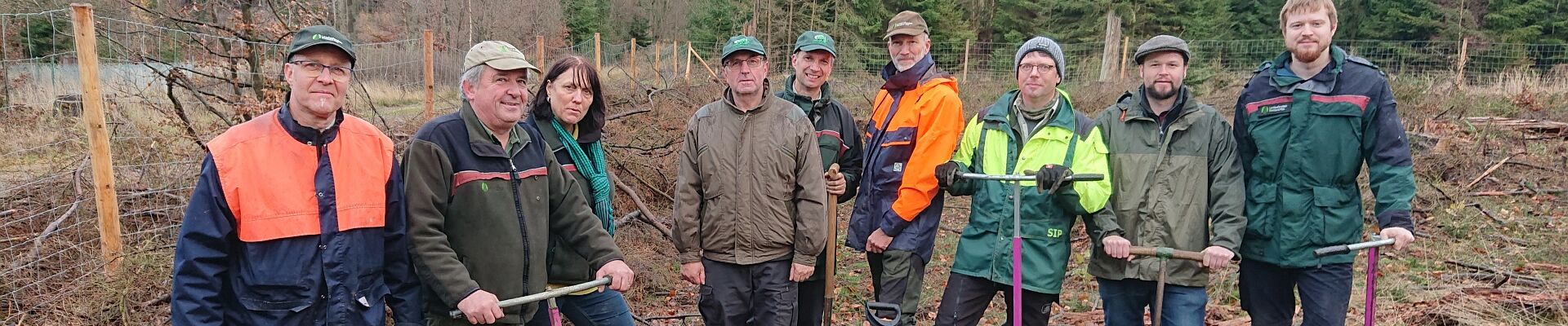 Am 27. November 2019 löste der BDF-Landesvorstand das Versprechen ein und pflanzte 100 Weißtannen, 100 Bergahorne und 100 Eichen in eine vorbereitete Kleingatterfläche, auf der vorher über hundertjährige Fichten der Trockenheit und dem Borkenkäfer zum Opfer fielen.